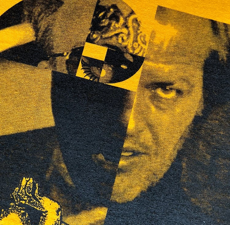 Three colour screen print on heavy weight 200gsm Gold tee. 100% combed cotton fabric and comfortable ribbed neck. Stickers with every order