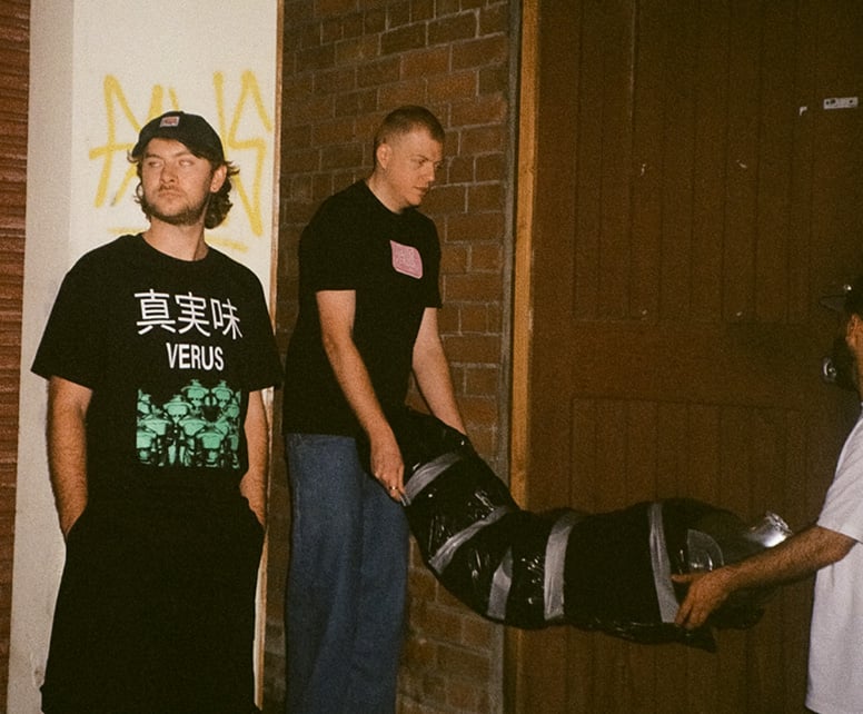 Two colour screen print on heavy weight 200gsm Black tee. 100% combed cotton fabric and comfortable ribbed neck. Stickers with every order